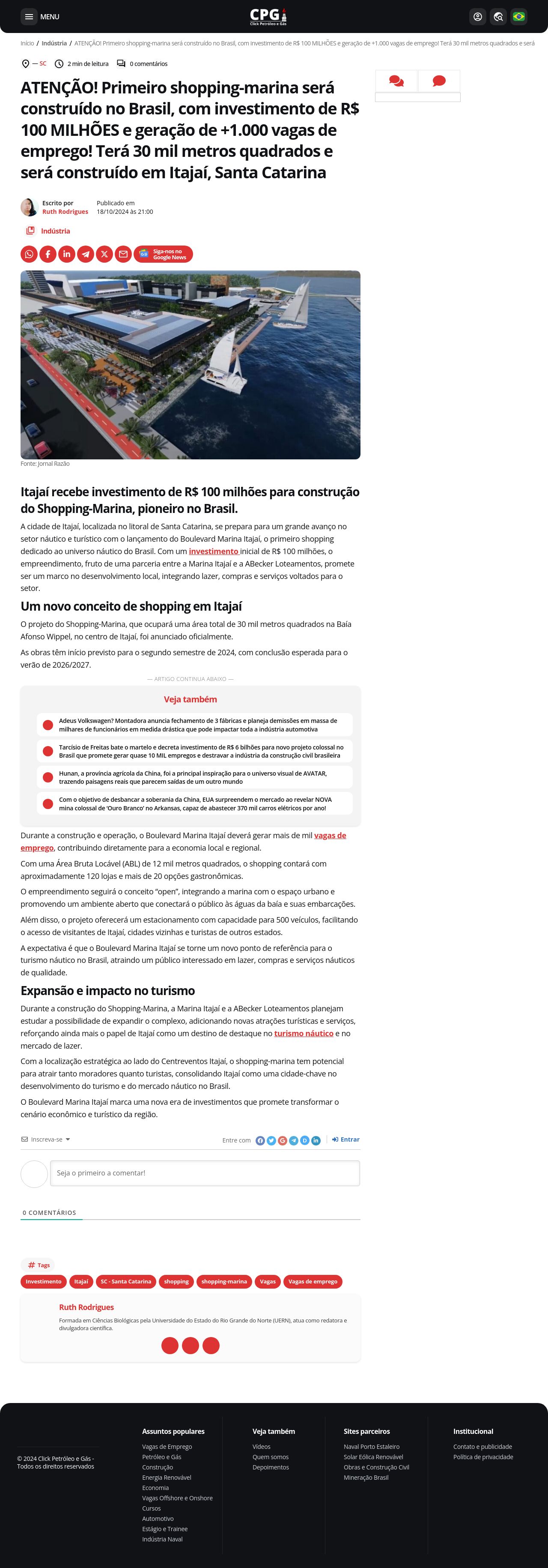 ATENÇÃO! Primeiro shopping-marina será construído no Brasil, com investimento de R$ 100 MILHÕES e geração de +1.000 vagas de emprego! Terá 30 mil metr
