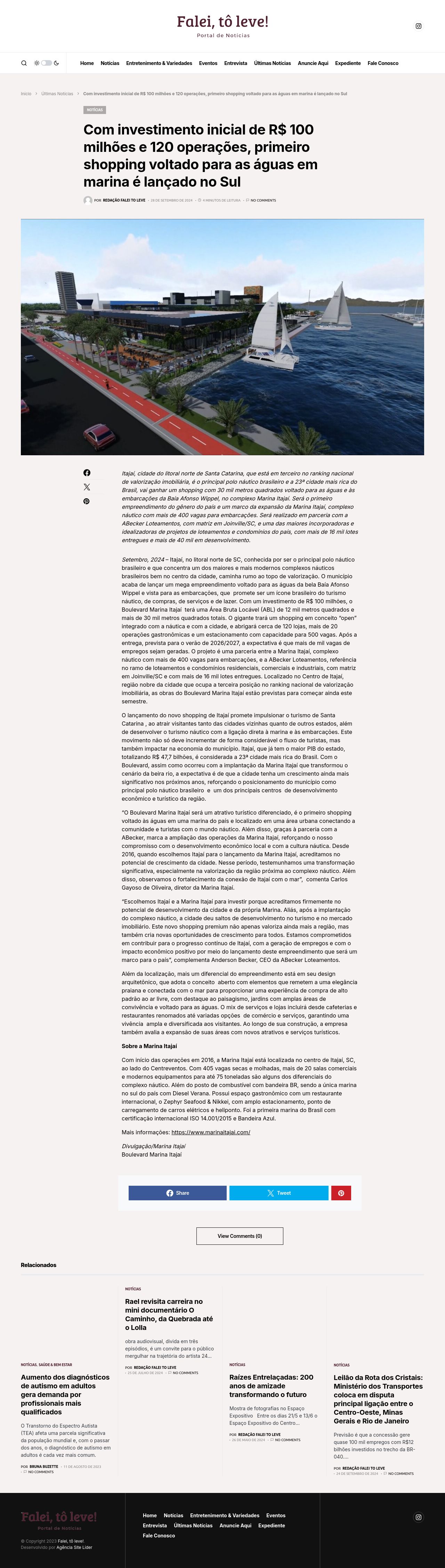 Com investimento inicial de R$ 100 milhões e 120 operações, primeiro shopping voltado para as águas em marina é lançado no Sul - Falei, tô leve!