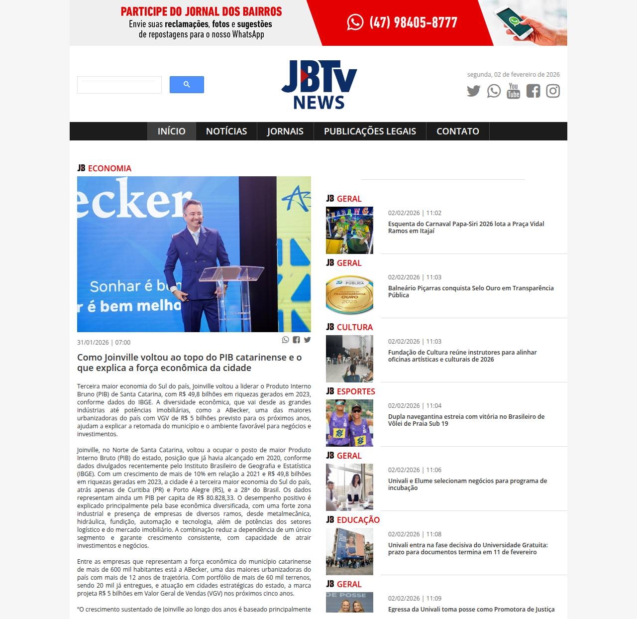 31/01/2026 - Jornal dos Bairros Itajaí