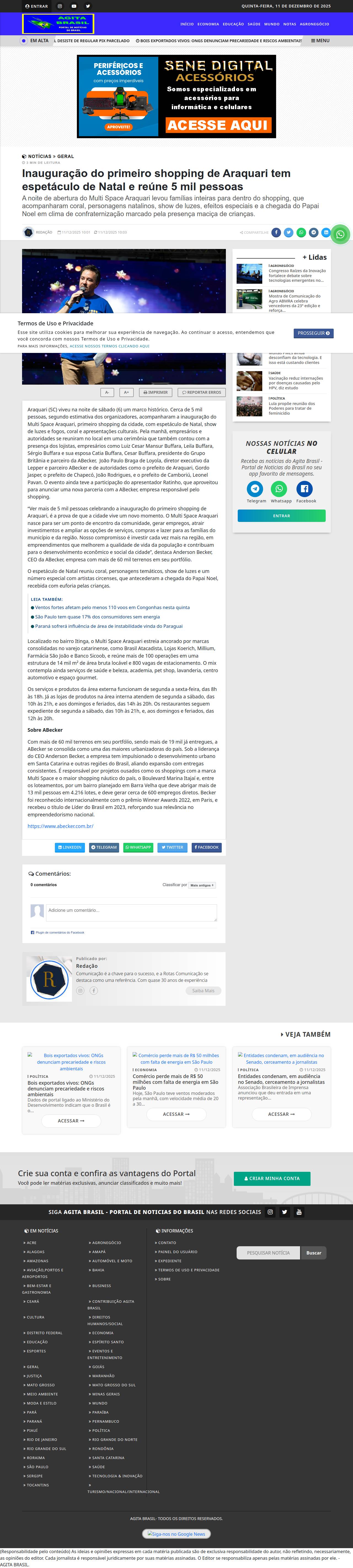 Inauguração do primeiro shopping de Araquari tem espetáculo de Natal e reúne 5 mil pessoas - Agita Brasil - Portal de Noticias do Brasil