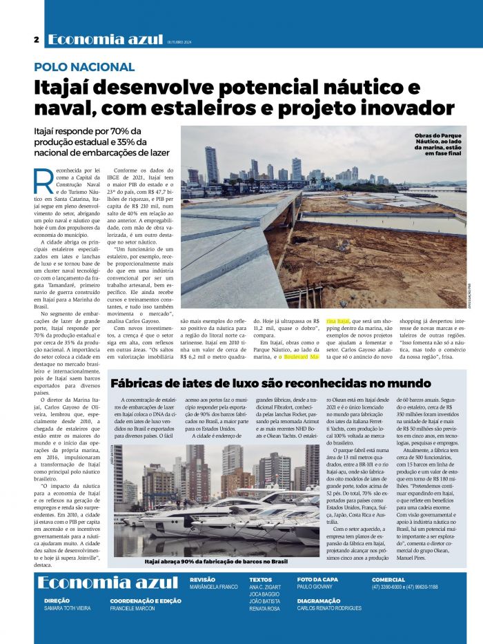 Itajaí desenvolve potencial náutico e naval, com estaleiros e projeto inovador