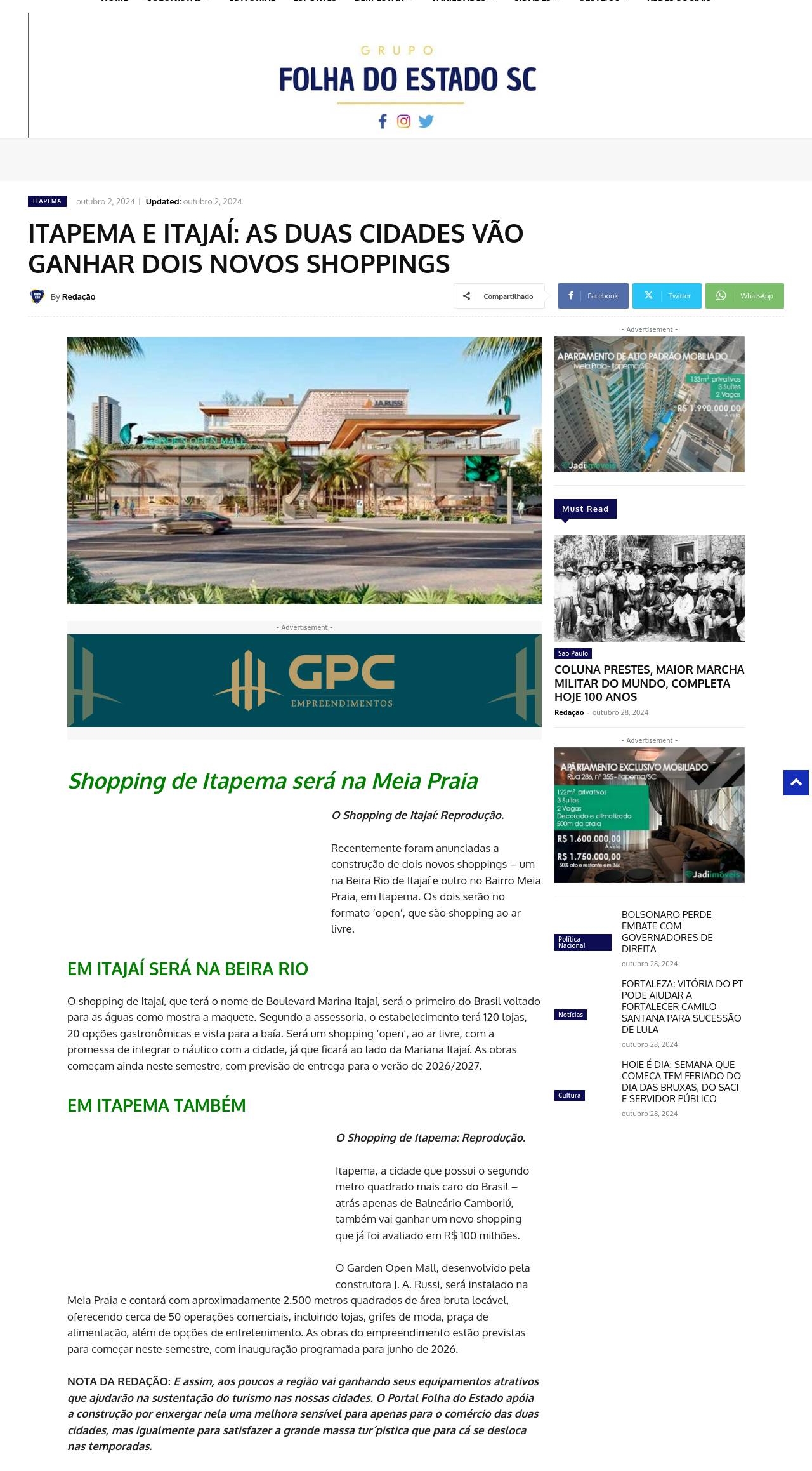ITAPEMA E ITAJAÍ: AS DUAS CIDADES VÃO GANHAR DOIS NOVOS SHOPPINGS - Folha do Estado SC